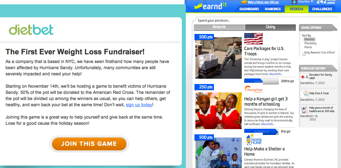 Science has also identified that giving makes people happier. There are several new websites such as Earndit.com and Dietbet.comthat donate to charities when you meet your fitness goals. Volunteering at organizations during the holidays or weekends is also an option to consider.