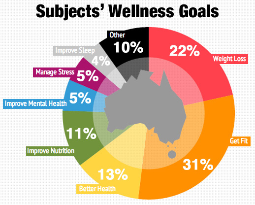 Despite the need for an improvement in mental health, 31% subjects identified being more physically active or “Getting Fit” as their top wellness goal for the program. Only 5% of subjects identified managing their stress and 5% identified improving their mental health as their top wellness goals for the program.